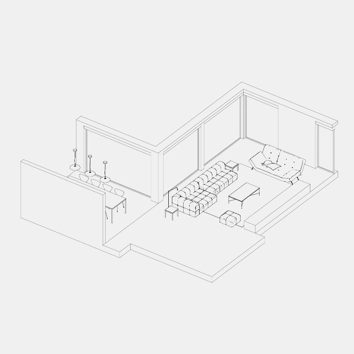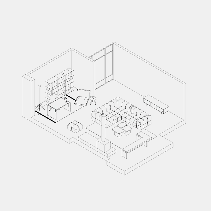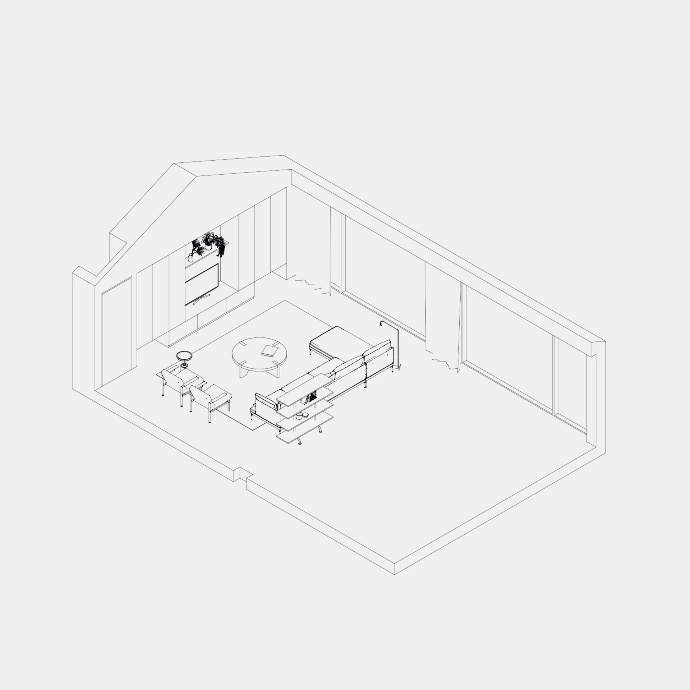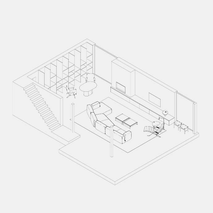 De tekeningen functioneren niet louter als representatie, maar als een gecontroleerde compositie waarin elk element bewust wordt gepositioneerd. Ze tonen hoe maatwerk, materialen en sfeer elkaar versterken tot een uitgebalanceerd geheel dat volledig is afgestemd op de context van de gebruiker.