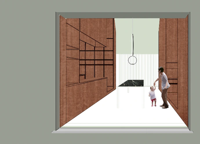 De doorgroeiruimte fungeert als flexibele buffer en kan evolueren van speelhoek tot studieplek of mini-bibliotheek, terwijl de kookzone zich ergonomisch en comfortabel organiseert met maximale relatie tot buitenlicht. Wat resteert is een vloeiende circulatieruimte die de functies met elkaar verbindt en het dagelijks gebruik choreografeert.